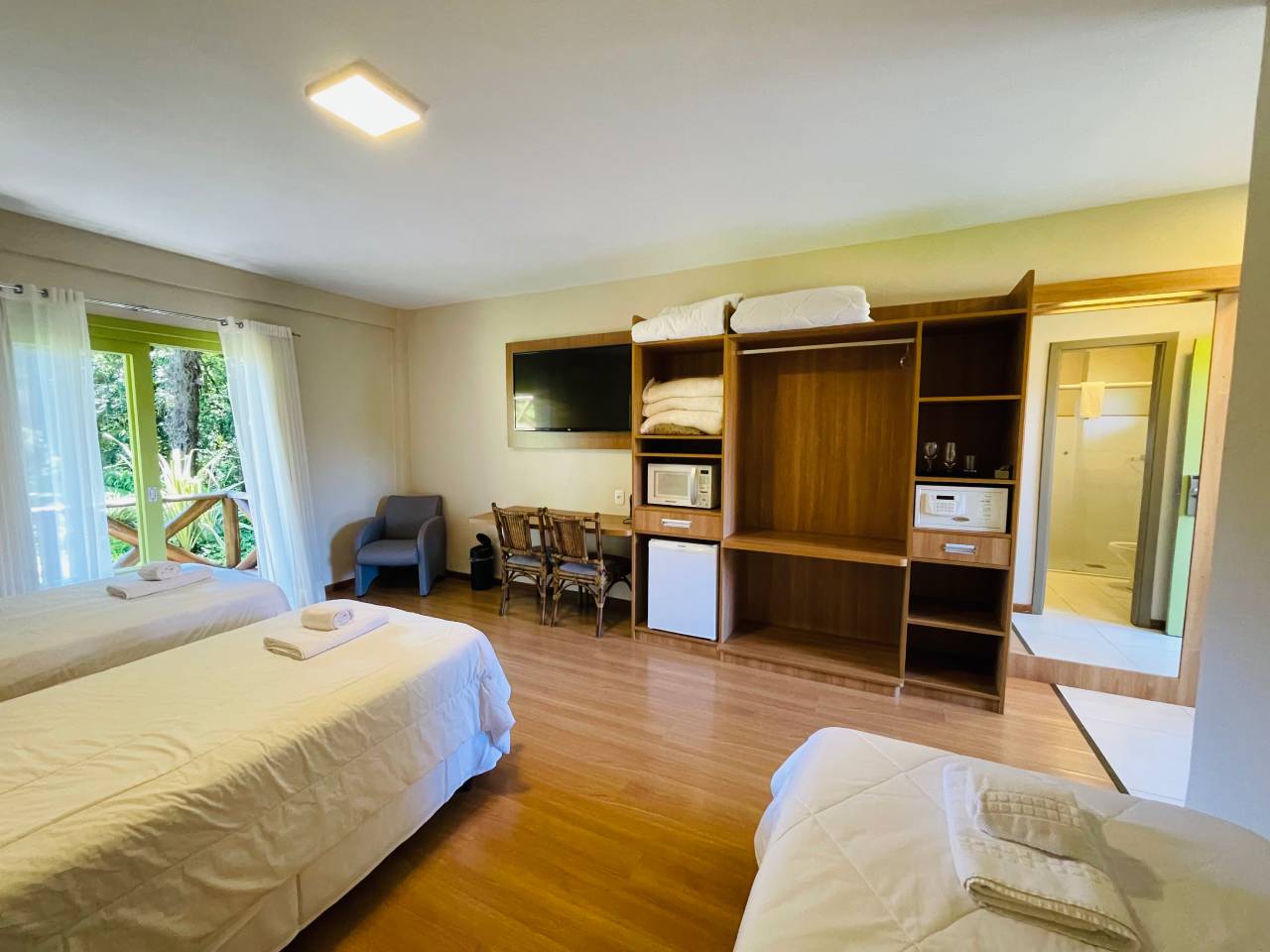 Os Apartamentos Luxo são acomodações convencionais, similares aos Studios, mas com o mesmo padrão elevado de conforto característico do Villa Flor Ecoresort.