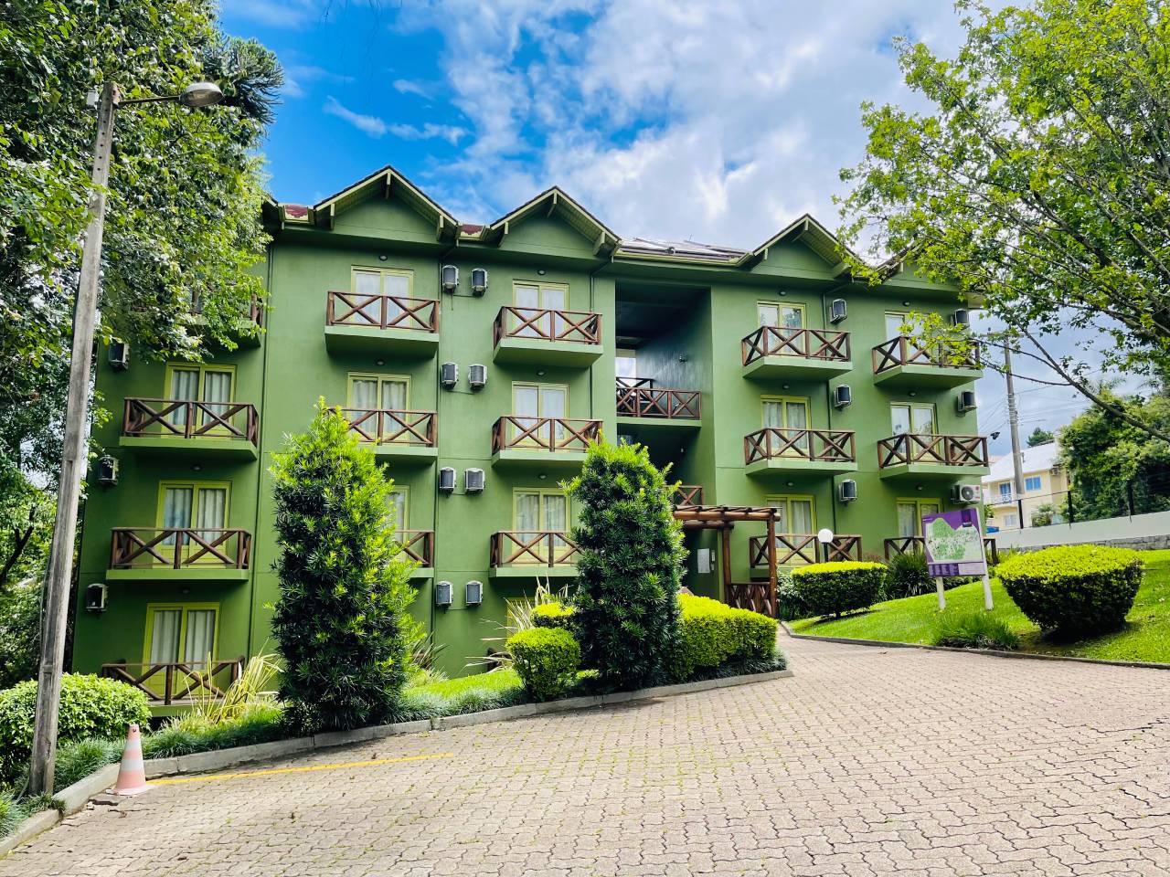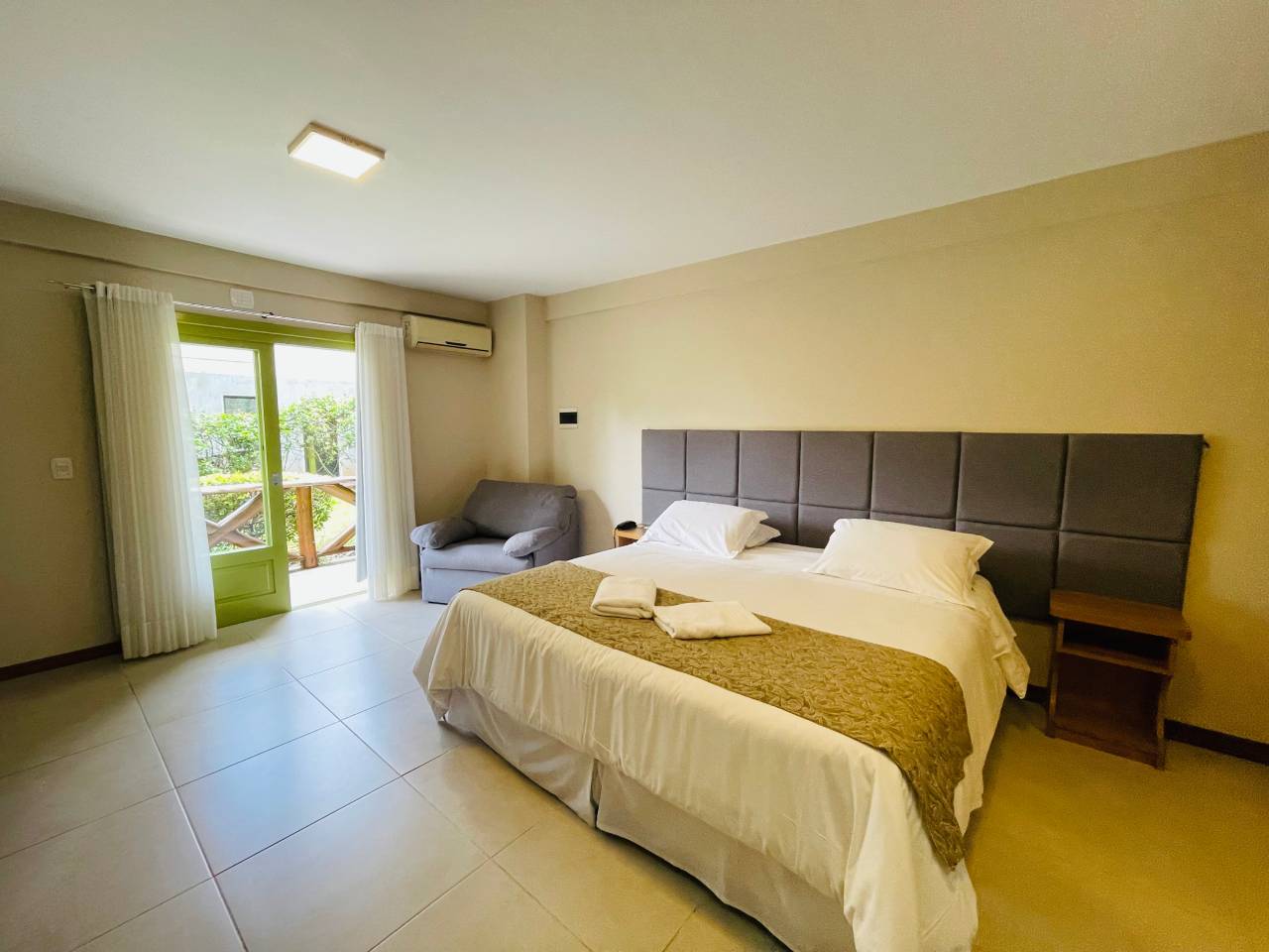 Seu diferencial está na ampla sacada privativa, perfeita para apreciar a tranquilidade do ambiente. Apesar de serem acomodações mais convencionais, semelhantes aos Studios, mantêm o mesmo padrão de conforto que define o Villa Flor Ecoresort.