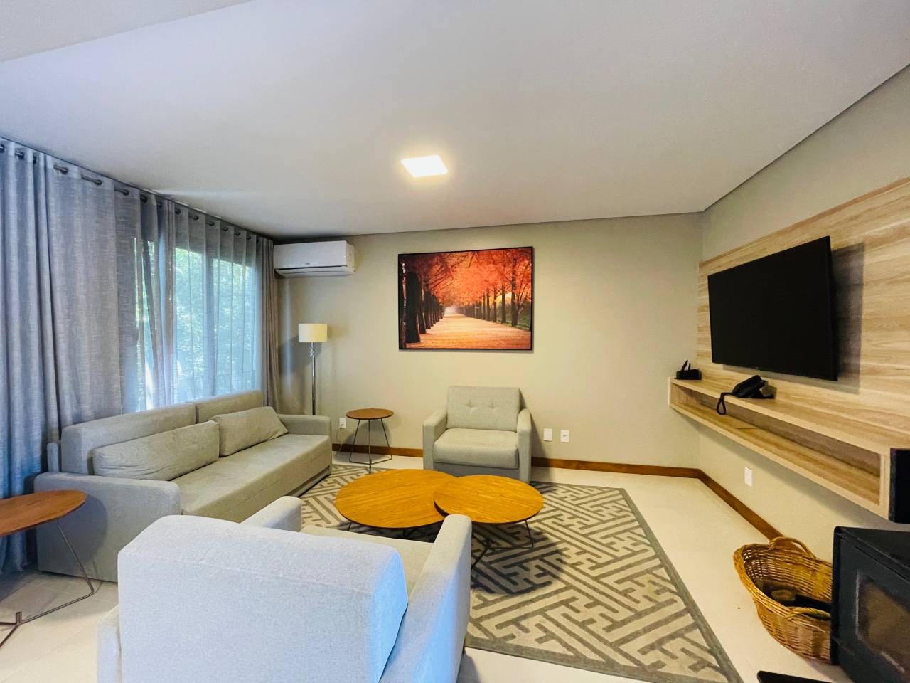 A Casa Villa Flor possui sala de estar com TV Smart 55", lareira, ar condicionado split e lavabo. Cozinha americana com varanda, fogão cooktop 4 bocas, forno elétrico, microondas e espaço gourmet com churrasqueira. Dois quartos sendo suítes com TV Smart 43", ar condicionado split, canais digitais, telefone, secador de cabelo, cofre e estar íntimo com banheira de hidromassagem para casal. Internet de alta velocidade.