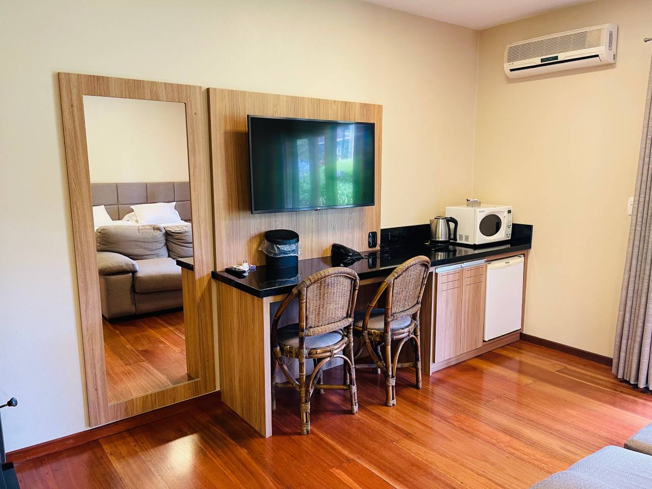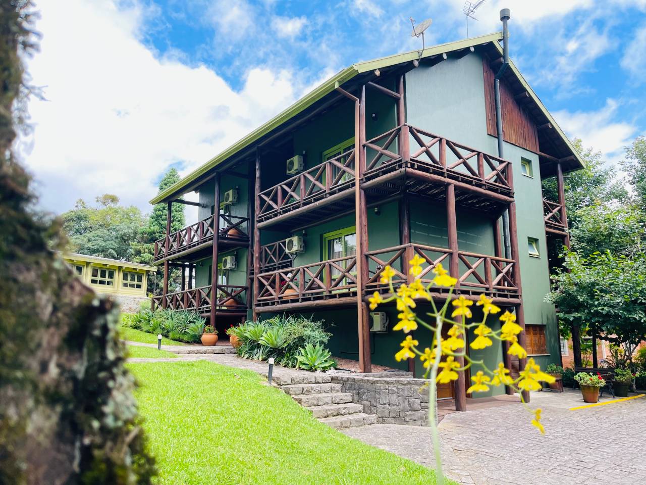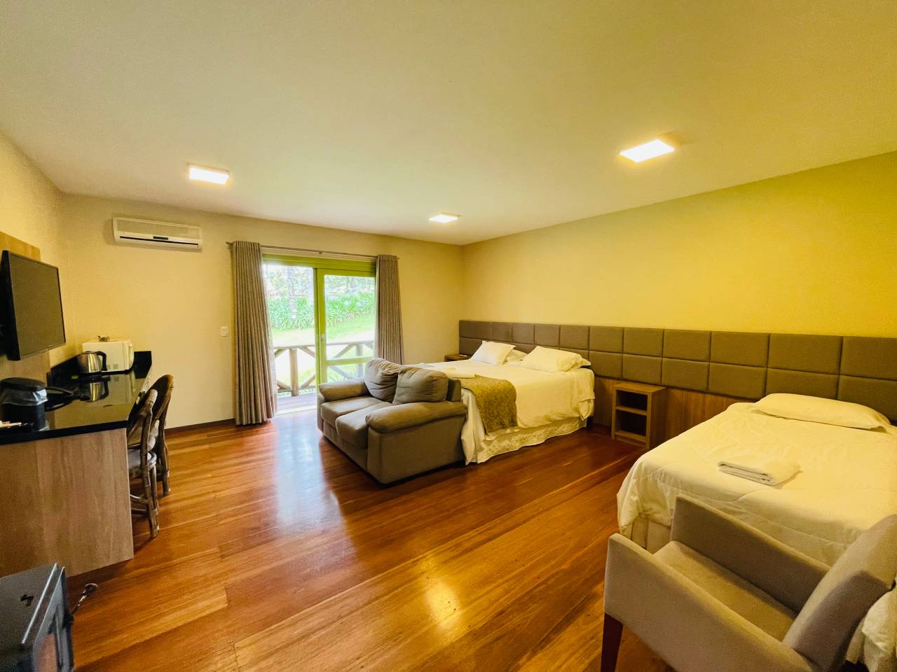 Os Studios Luxo combinam charme rústico com a sofisticação que caracteriza o Villa Flor Ecoresort, proporcionando uma experiência única de conforto e conexão com a natureza.