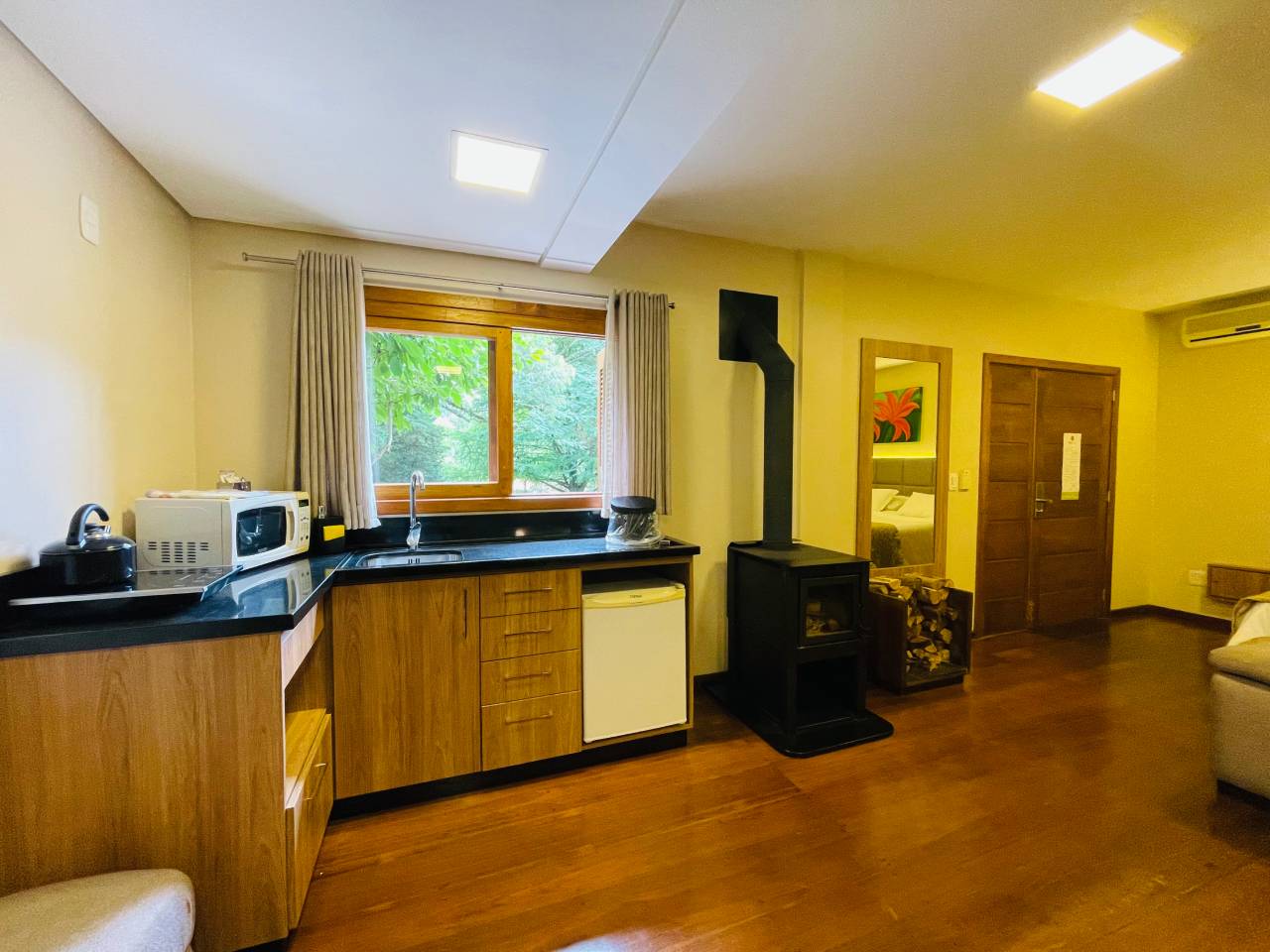 O Studio Master combina charme rústico e sofisticação em um ambiente cuidadosamente projetado para proporcionar conforto e praticidade. Mantendo o padrão elevado do Villa Flor Ecoresort, essa acomodação oferece um espaço único e acolhedor.